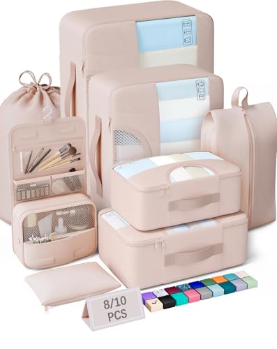 Veken 8 Set Packing Cubes for Travel, Gifts for Women Mom, Suitcase Organizer Bags for Luggage with Hanging Toiletry Bag and Shoe Bag, Vacation Essentials Travel Accessories for Cruise Ship