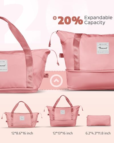Idea spacious Weekender Bag:The luggage’s interior has a strap for securing clothes, a pocket with a zipper to separate wet and dry items, and a mesh area for documents or toiletries.with duffel bag and toiletry bag, provides the best additional storage for your belongings