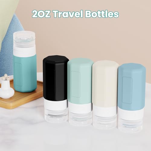 2 oz Travel Bottles, Small Size Containers, TSA Approved Silicone Toiletries Bottles, Shampoo and Conditioner Travel Kit for Women (Blue)