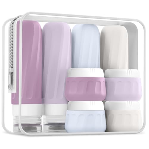 Travel Bottles for Toiletries 8 Pack, Travel Size Toiletries, Tsa Approved Travel Size Containers 3oz, with Travel Essentials Clear Bag, Leak Proof Silicone Squeezable Creams Jars