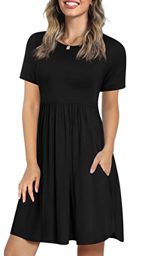 LONGYUAN Women’s Casual Dresses 2025 Summer Short Sleeve Dress Hide Belly Loose Fit Sundress with Pockets S-3XL