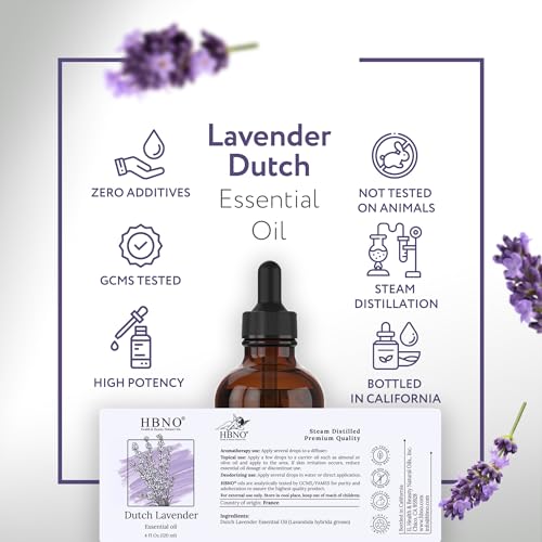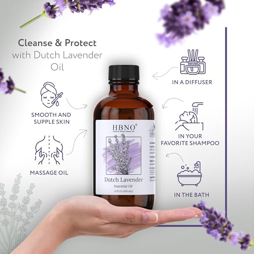 HBNO California Bottled Dutch Lavender Essential Oil 4 fl oz (120ml) – Natural Lavender Oil for Skin, Perfect for Cleaning, Aromatherapy, DIY & Diffuser