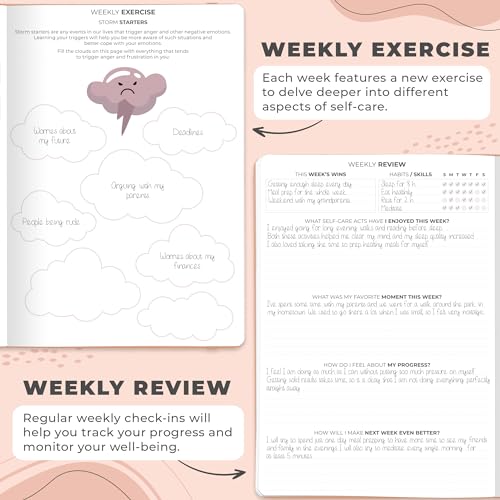 DELVE DEEPER WITH WEEKLY EXERCISES & REVIEWS: Each week of the mental health journal includes an exercise and a weekly review to build self-awareness and reflect on your week. Using these will help you delve deeper and make the most of your self-journal for women.